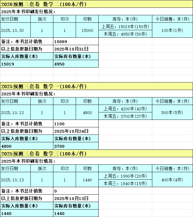 2026李艳芳数学预测3套卷 数一/数二/数三